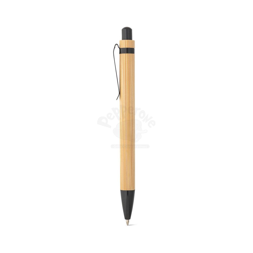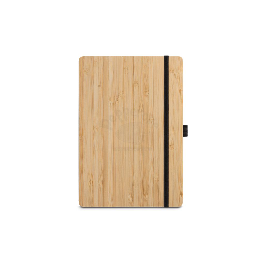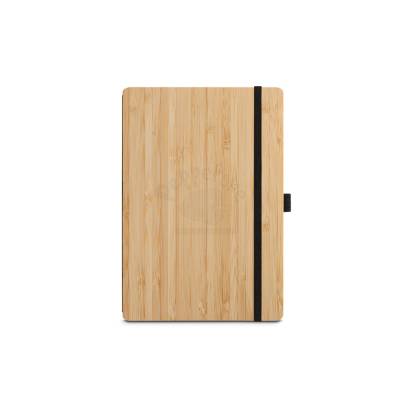 Conjunto de caderno A5 e esferográfica em bambu. O caderno de capa e contracapa em placa de bambu e lombada em poliéster 100% reciclado (100% rPET). Interior contém 96 folhas pautadas com papel reciclado. Suporte para esferográfica (inclusa) e elástico para fecho do caderno. Esferográfica em bambu e escrita em preto. Fornecido em caixa presente de oferta de papel kraft reciclado. A cor e o resultado da impressão nos materiais naturais pode variar entre produtos.