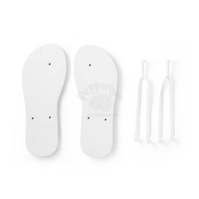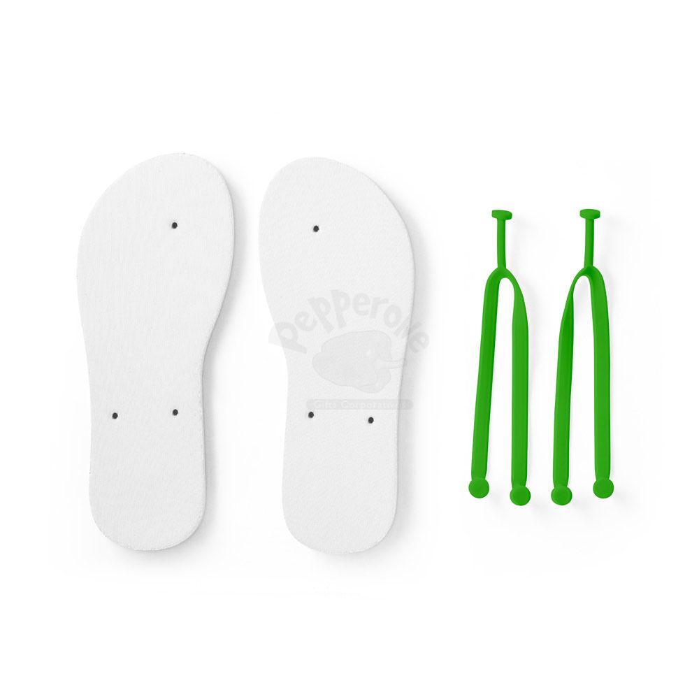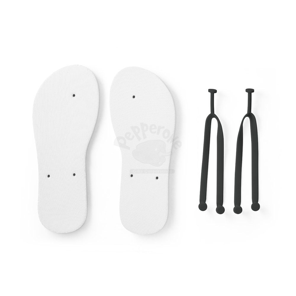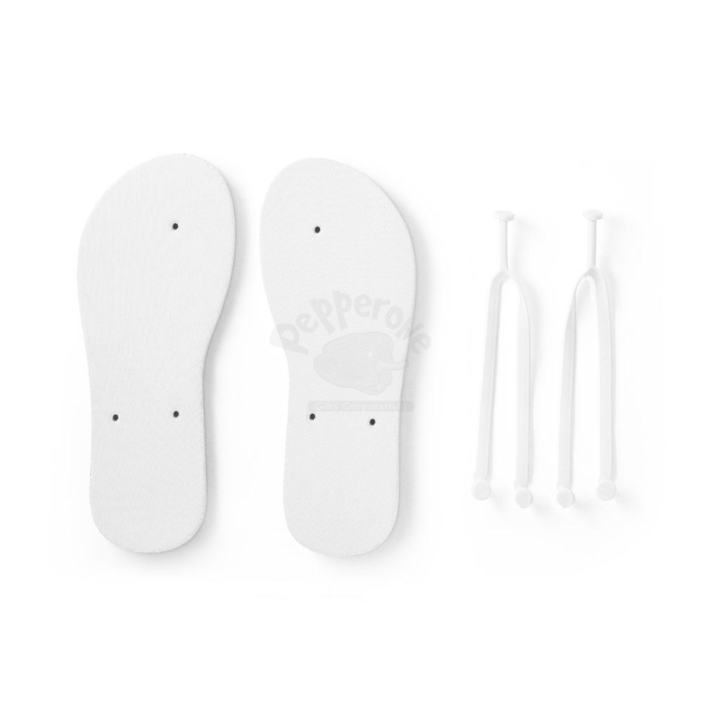 Chinelos confortáveis com sola em EVA e tira em PVC. A sola é totalmente personalizável em sublimação. Tamanhos disponíveis: G/GG (40 ao 43). Fornecidos em polybag. G/GG