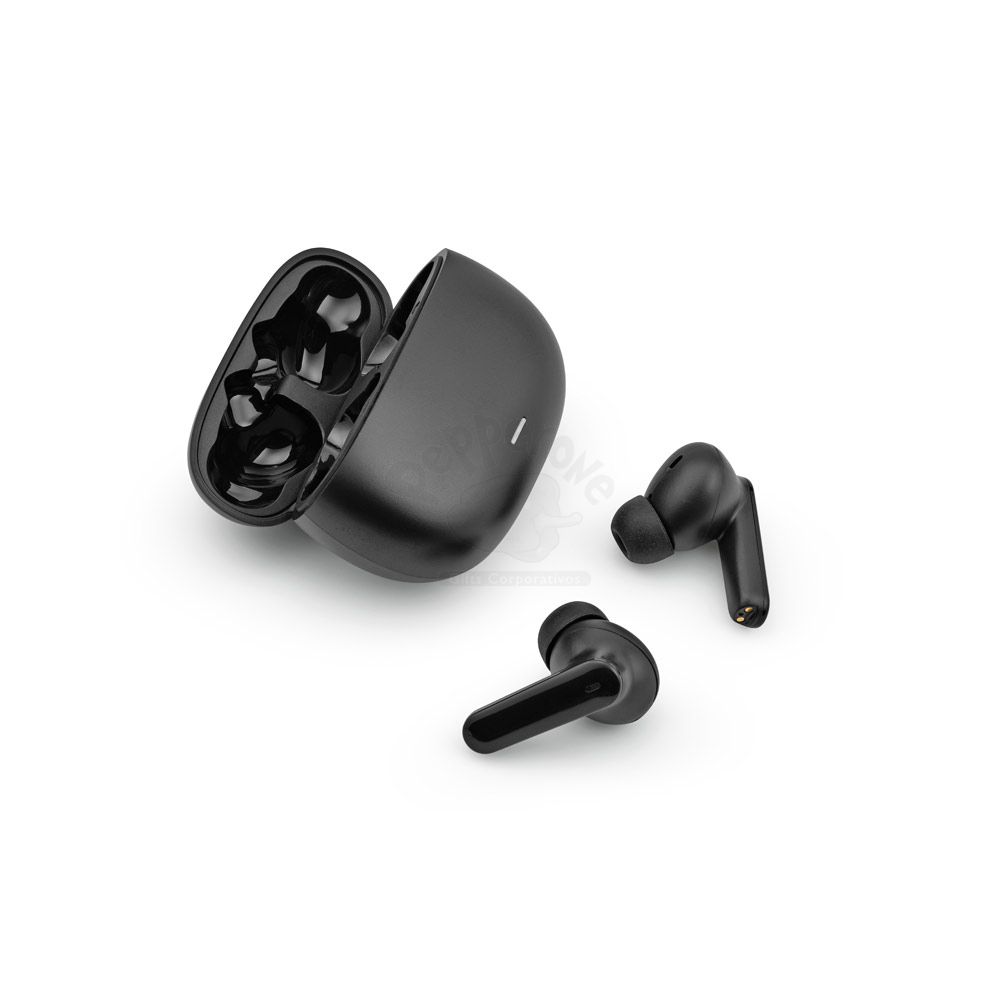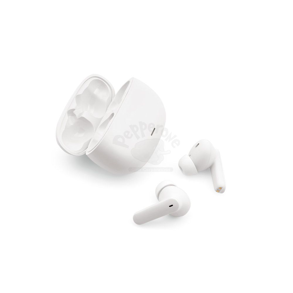 Fone de ouvido wireless em ABS 100% reciclado. Transmissão sem fios BT 5.3 com autonomia, aproximadamente, de 6 horas. Função para atender chamadas, controlo de volume e conexão à playlist do dispositivo móvel. Incluso cabo de carregamento USB-C e pares extra em borracha. Fornecido em caixa presente de papel kraft.