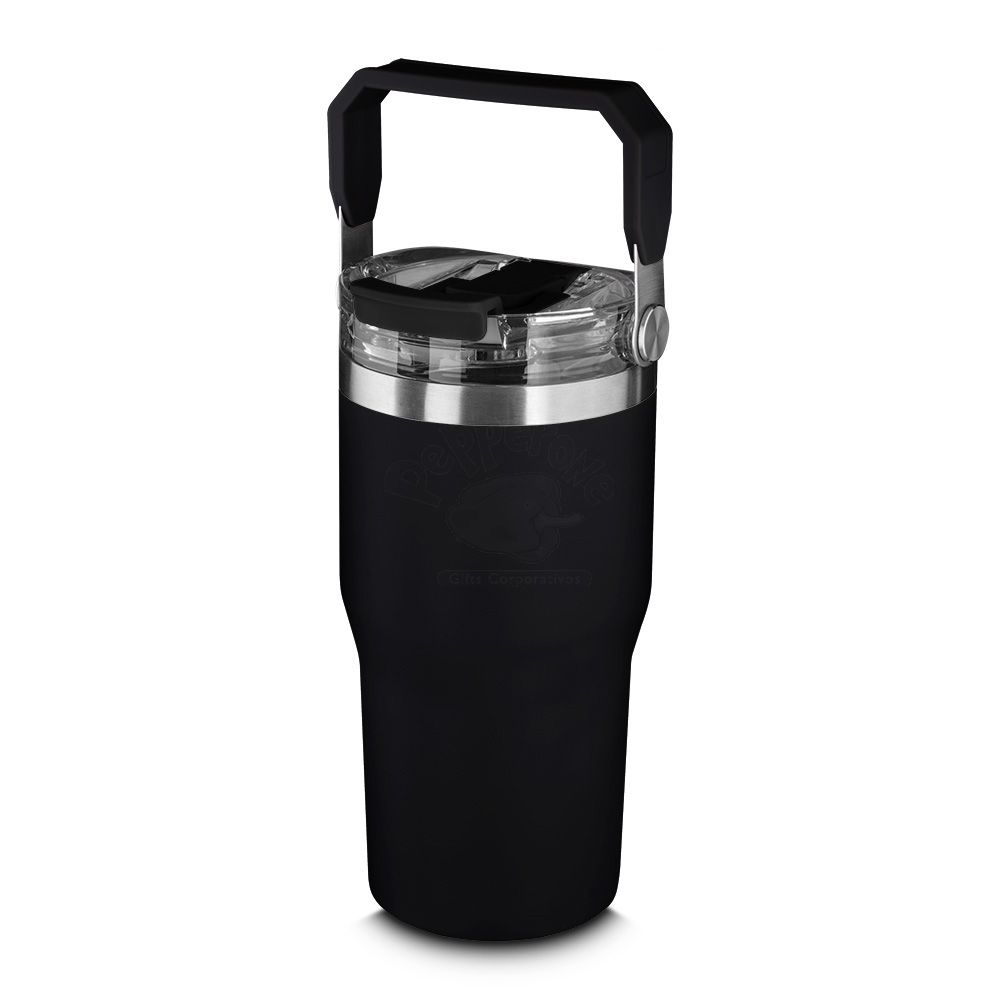 Garrafa térmica em aço inox com parede dupla com capacidade de até 650ml,tampa rosqueável com alça em plástico, permite-se hidratar por canudo ou bico,com e anel de silicone para vedação.