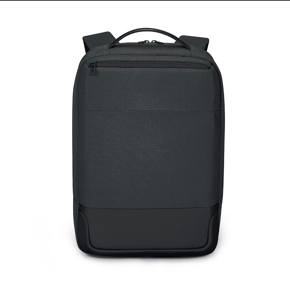 Mochila premium, produzida com poliéster acolchoado, alças de ombro acolchoadas, interior com divisórias com zíper para acomodar pequenos objetos, bolso frontal com zíper e na parte das costas uma divisória atrás, com engate para mala de viagem, aceita notebook de até 15,6”, porta USB na lateral.