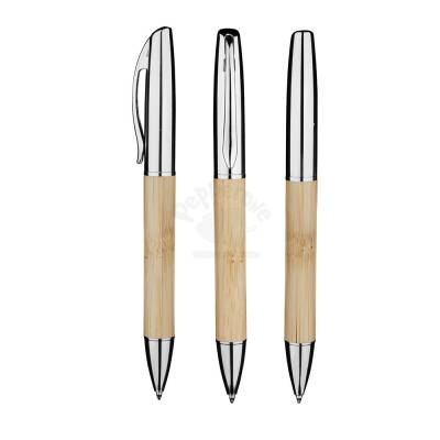 Caneta corpo de bambu com detalhes em metal.