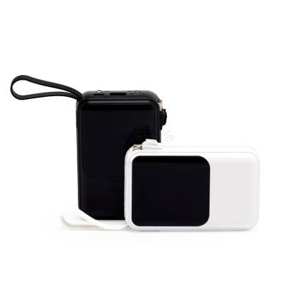 Carregador power bank de 10.000mAh com lanternas e múltiplas saídas. Fabricado em plástico com display integrado, este power bank vem equipado com quatro cabos de carregamento, eliminando a necessidade de transportar cabos extras. Compatível com entradas V8, Tipo-C, Lightning e USB, praticidade é o sinônimo deste carregador. Com alça de borracha e um tamanho compacto para um transporte discreto, ele possui uma capacidade real de 6.000mAh para manter os dispositivos sempre carregados. Acompanha cabo USB-V8.