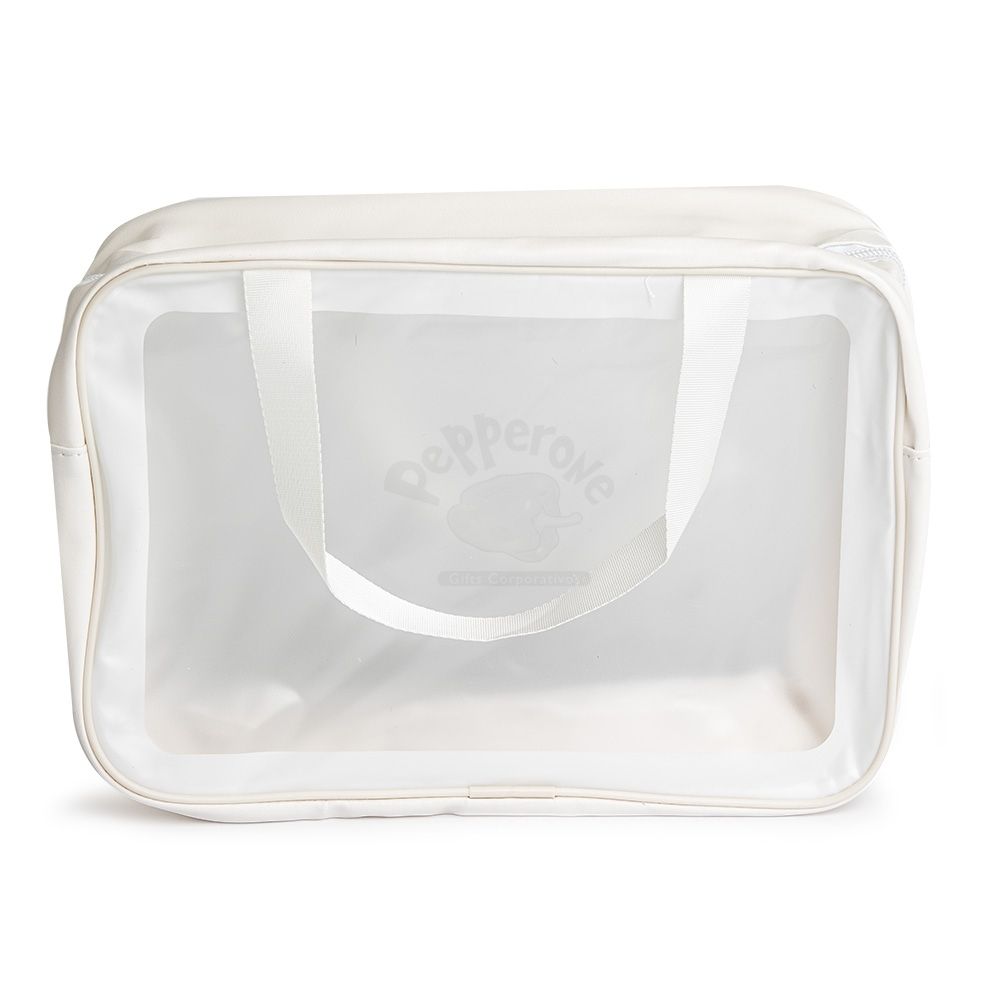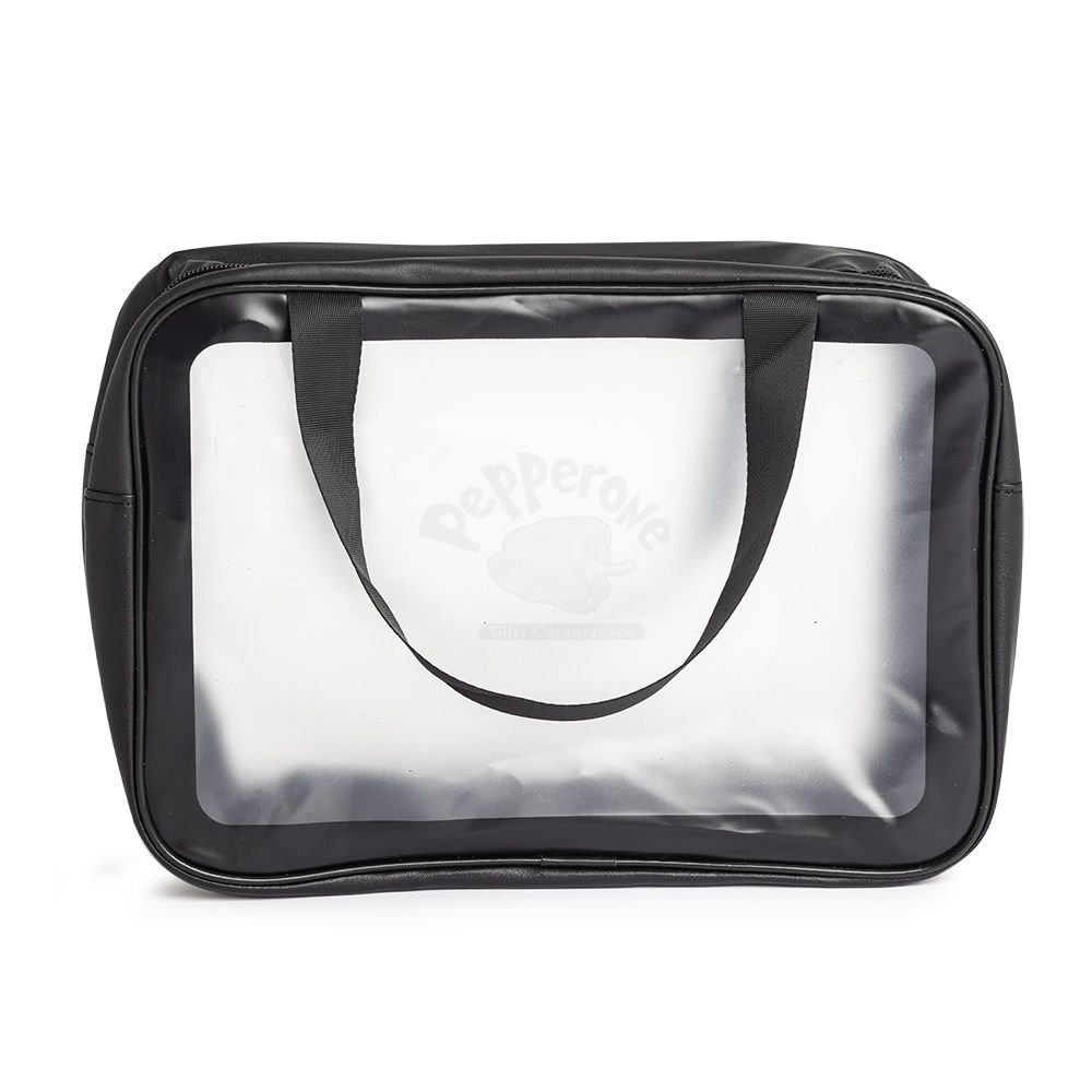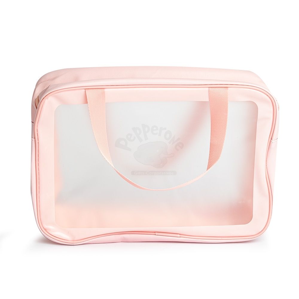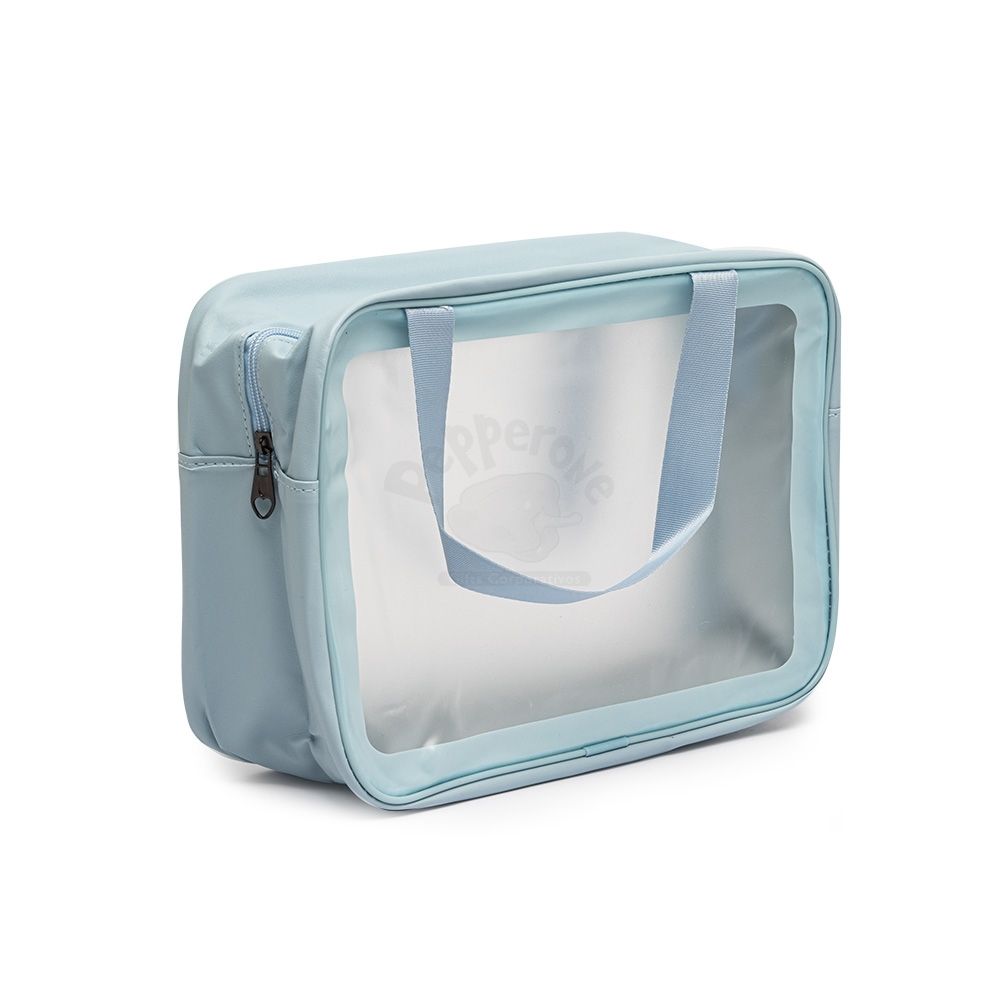 Nécessaire de PVC e PU resistente à água, com duas alças laterais de mão.
