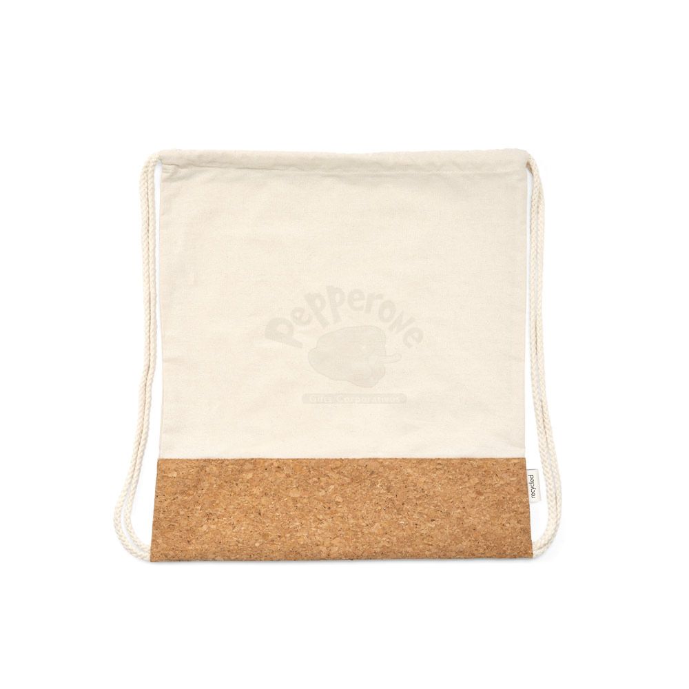 Sacola Tipo Mochila em Algodão Reciclado com Base em Cortiça Personalizado