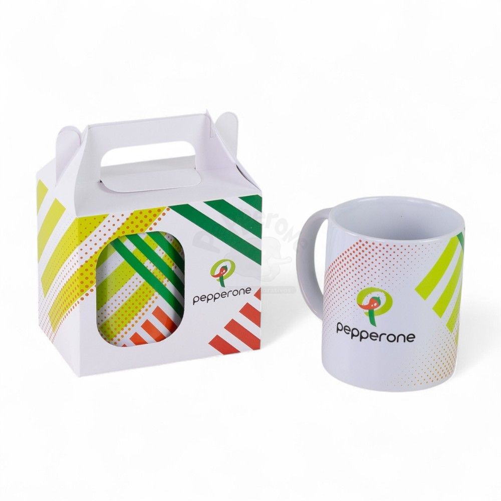 Caneca de porcelana para brindes com alta durabilidade de impressão e alça lateral. Capacidade 325ml. Fácil de limpar e resistente ao micro-ondas e lava-louças, acompanha embalagem personalizada em papel Triplex 300 g, com alça superior e visor frontal. Impressão colorida. Perfeita para kits comemorativos e brindes corporativos. Obs.: Venda apenas em conjunto (embalagem + caneca)
