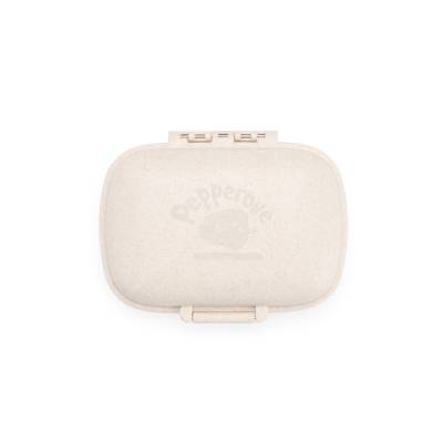 Porta-comprimidos compacto feito em plástico obtido da palha de trigo e anel de vedação para as bordas em silicone. Possui oito compartimentos com tampas removíveis, sendo dois maiores com capacidade de até 30ml e seis menores com até 10ml cada. Acompanha palheta multiuso.