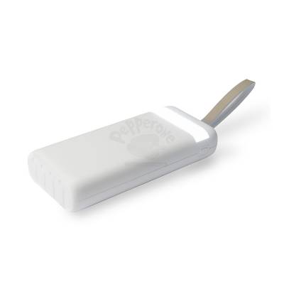 Um power bank em plástico com a capacidade de até 20.000mAh sob medida para energizar smartphones, tablets e outros dispositivos compatíveis. Apresenta quatro cabos diferentes com saídas para: Lightning, USB-C, Micro-USB e USB. Conta ainda com duas entradas — uma USB-A e outra USB-C — painel de LED numérico, lanterna frontal integrada e alça fixa em couro sintético para transporte. Acompanha cabo USB-C.