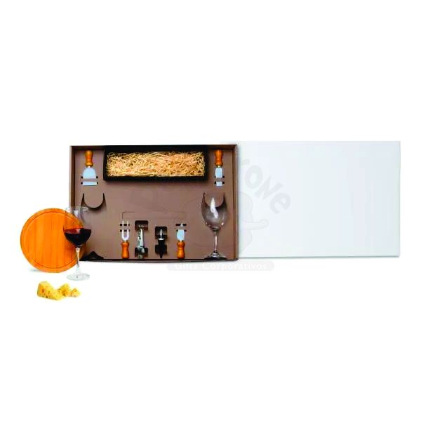 Kit Queijo E Vinho Com Espaço Para Garrafa - 9 Pçs