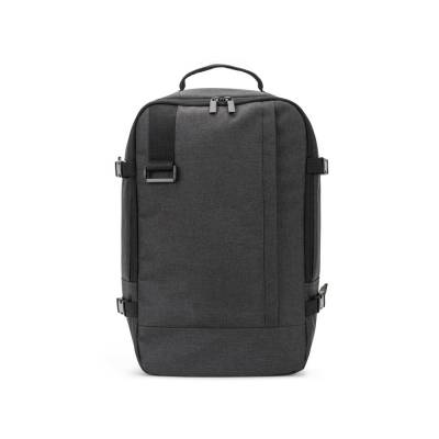 Mochila desenvolvida para cumprir as dimensões exigidas pelas companhias aéreas, permitindo-lhe viajar com tudo o que necessita como bagagem de mão. Composta em poliéster reciclado (rPET) 600D de alta densidade, com acabamento repelente à água, e forro em poliéster reciclado (rPET) 210D. Possui um compartimento principal amplo para roupa, um compartimento totalmente almofadado para um notebook até 14" e um bolso frontal.