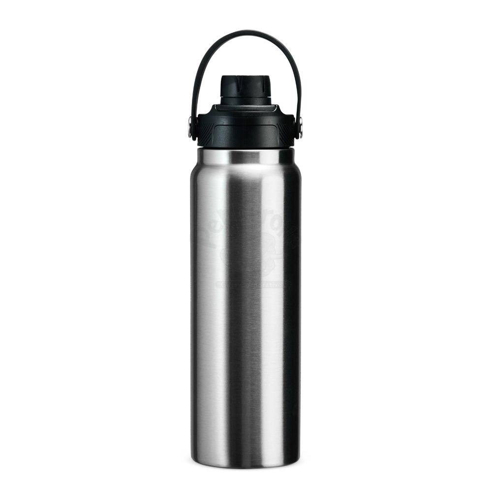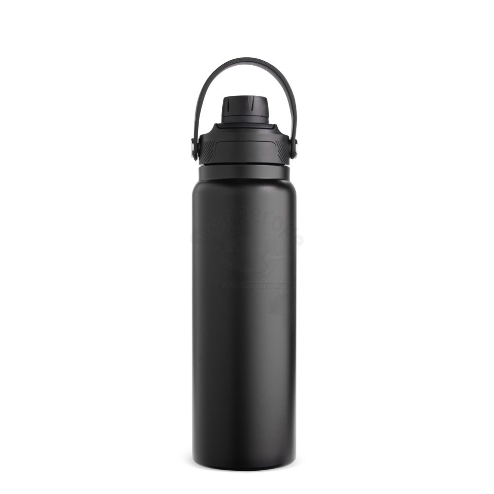 Garrafa térmica em inox com capacidade de até 800ml. Conta com estrutura de parede dupla e vedação a vácuo, o que possibilita manter a temperatura de líquidos por mais tempo. Possui tampa plástica rosqueável com protetor para o bocal e alça para transporte.