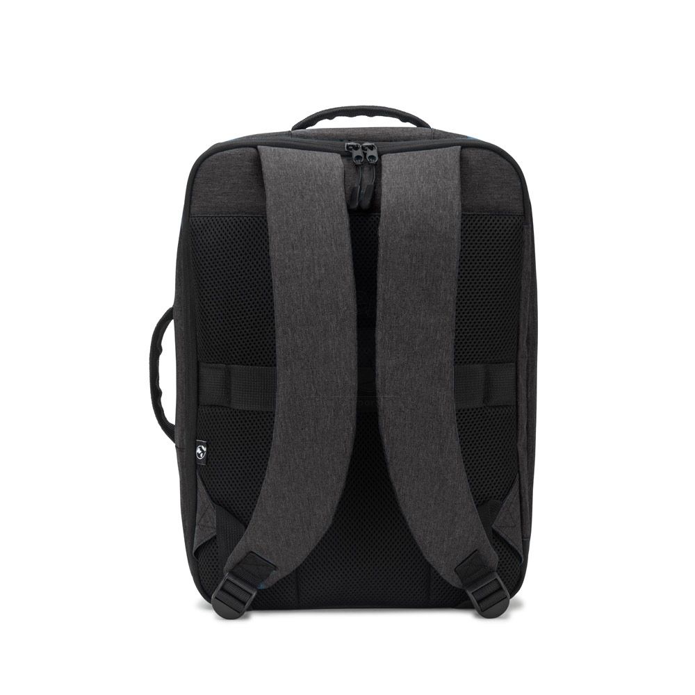 Mochila para notebook em poliéster reciclado 300D de alta densidade e forro em poliéster reciclado 190T. Possui um compartimento principal para notebook até 15.6" que pode ser totalmente aberto, possibilitando um acesso mais descomplicado, e um bolso frontal de grande dimensão. A mochila também pode ser utilizada como pasta graças à sua pega lateral e o seu formato compacto. A parte posterior em malha incorpora uma alça para trolley. Capacidade até 15 Litros.