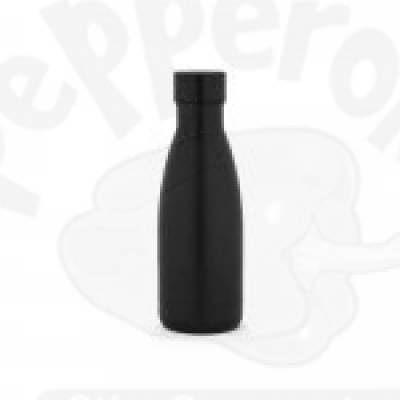 Garrafa térmica em aço inox 90% reciclado com parede dupla, isolada a vácuo e acabamento em mate. A tampa de rosca é à prova de vazamentos. Capacidade até 400 mL.