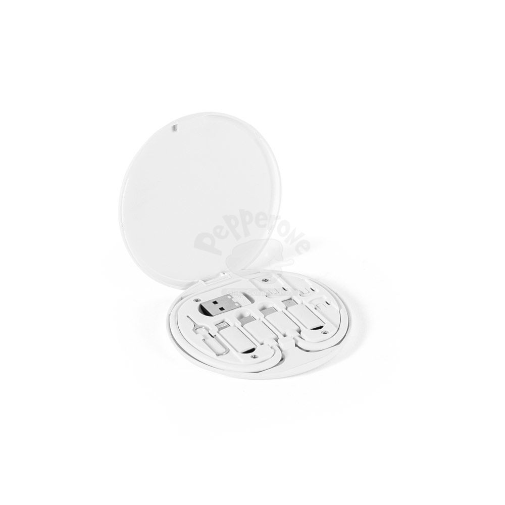 Conjunto composto por cabo e adaptadores de carregamento super-rápido em ABS 100% reciclado. Incluso um cabo USB-C para USB-C com 28,5 cm que suporta carregamento super-rápido até 60W e transferência de dados, um adaptador USB-C/USB-A, um USB-C/Micro USB e um USB-C/Lightning. Incluso ainda uma peça de remoção de cartões SIM e 3 slots para guardar cartões SIM Nano e Micro SIM.