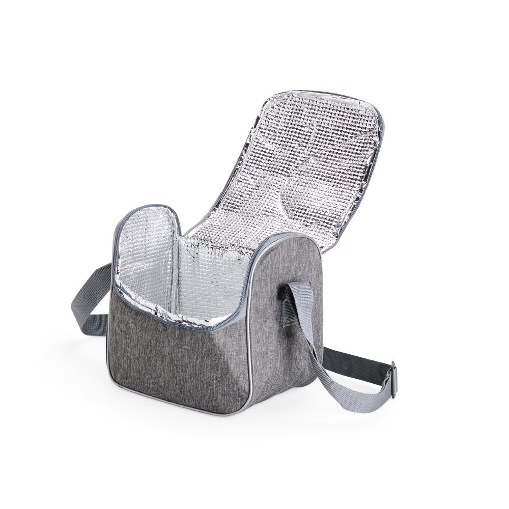 Bolsa térmica com capacidade de 6 litros. Feita em Oxford resistente à água, possui abertura frontal em zíper, além de revestimento interno em alumínio EPE, que ajuda a conservar a temperatura de alimentos e bebidas por mais tempo. Conta com uma alça superior e uma alça transversal fixas.