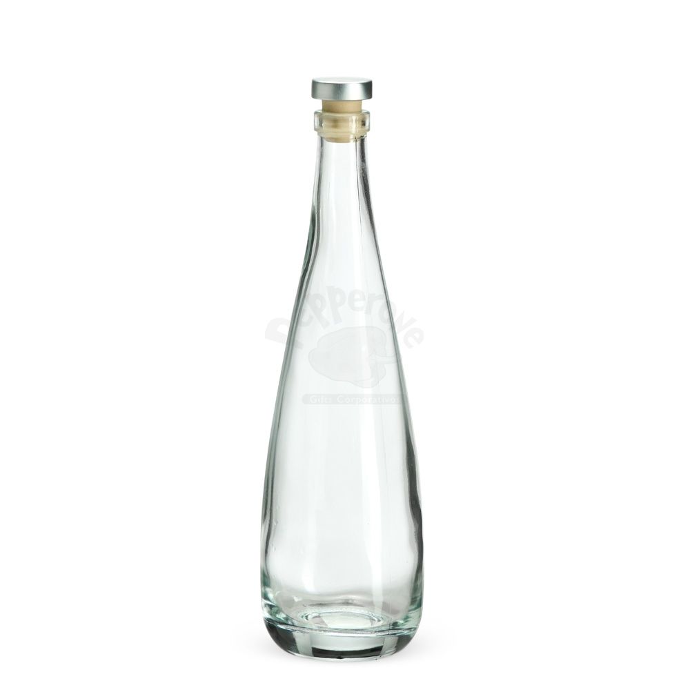 Garrafa de vidro com tampa rolha em material sintético e capacidade máxima de até 550ml.