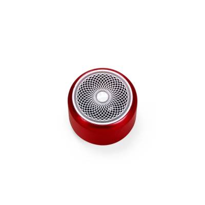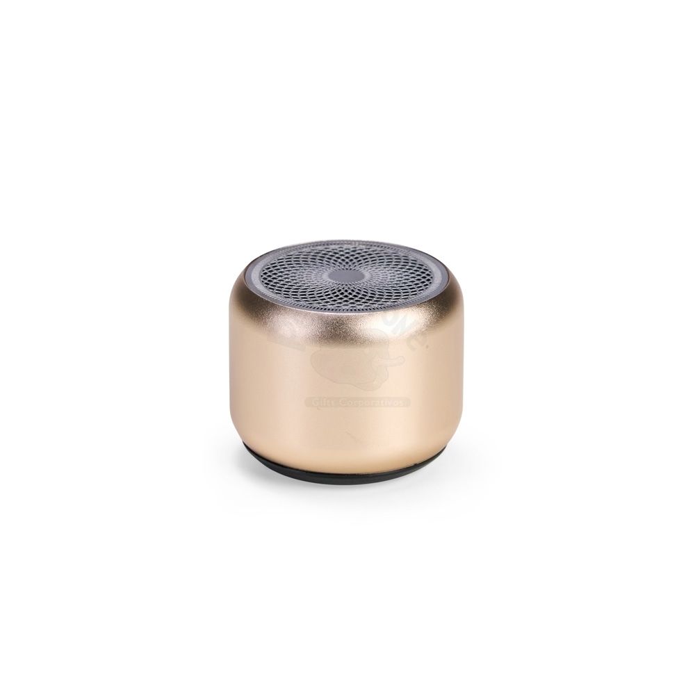 Caixa de som com estrutura em metal e plástico. Possui base emborrachada com botão liga/desliga, conexão Bluetooth 5.0, autonomia de reprodução estimada de até 2 horas e meia e entrada USB-C para carregamento. Acompanha cordão de nylon e cabo USB-C.