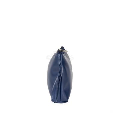 Nécessaire em couro sintético resistente à água, fechamento em zíper e alça lateral para transporte.