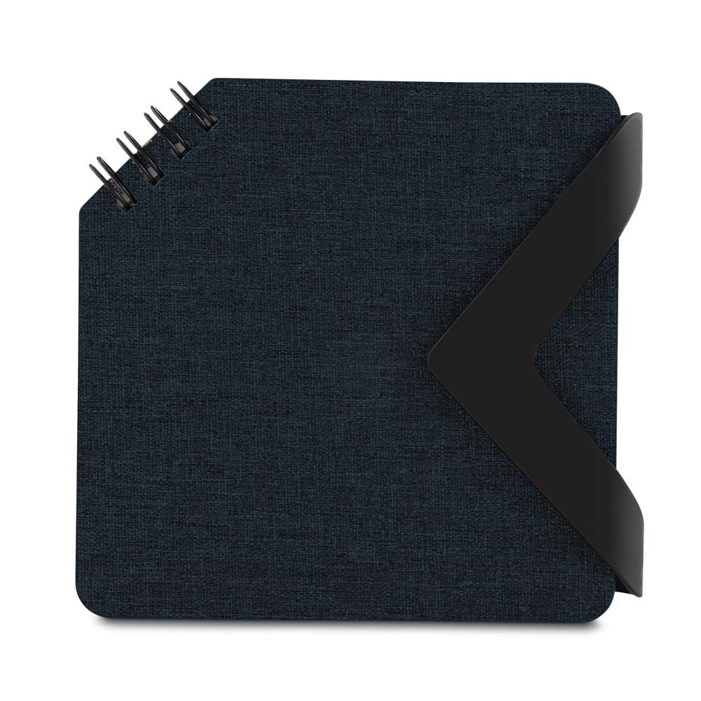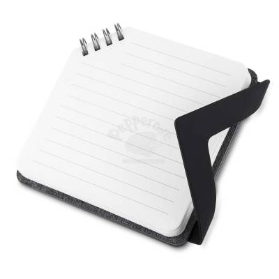 Mini caderno com capa em RPET e fecho magnético em PU, miolo bege composto por 70 folhas pautadas em papel 100g/m².