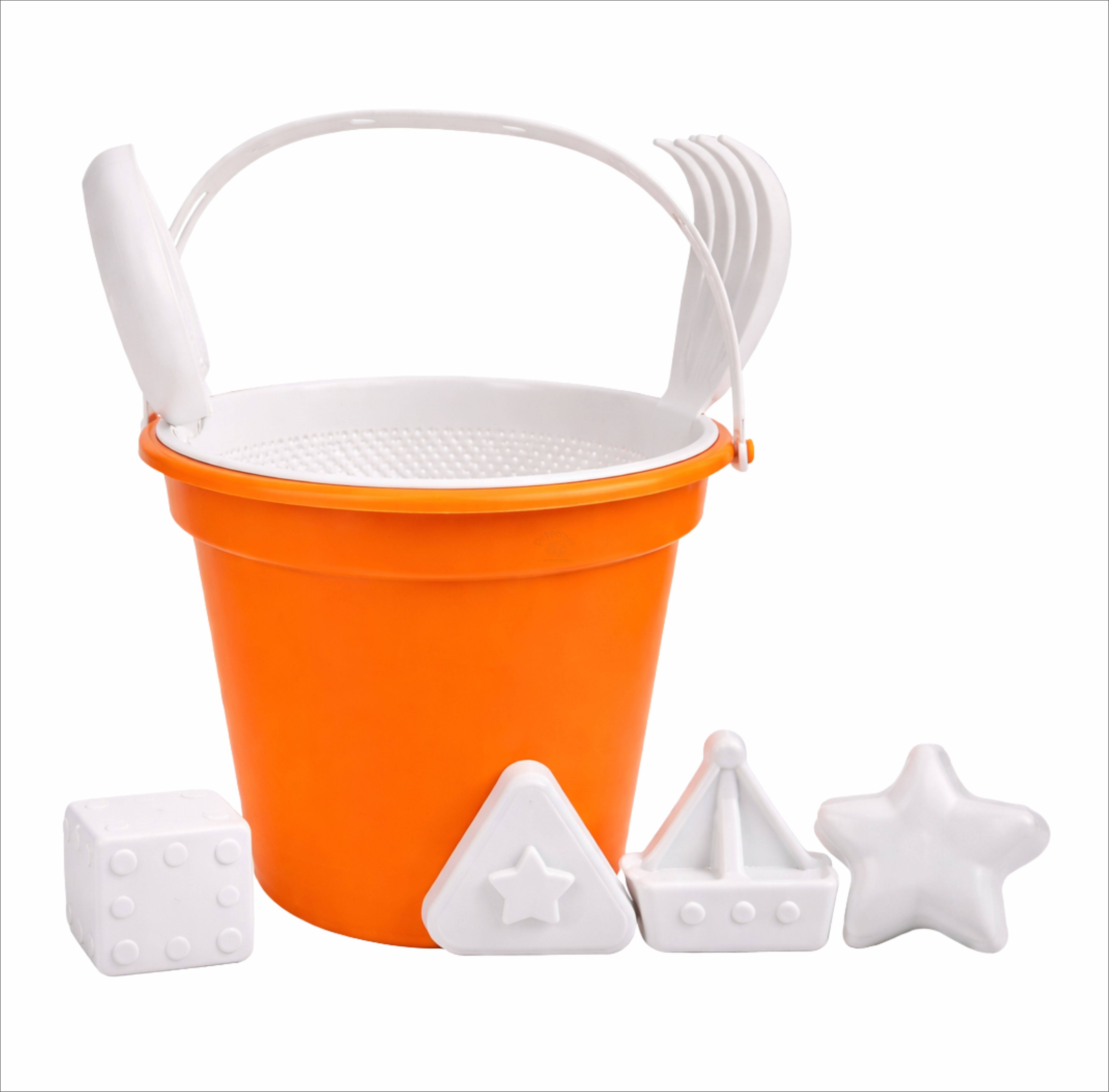 Baldinho de Praia com Peneira, Pá e Rastelo e 2 Formas