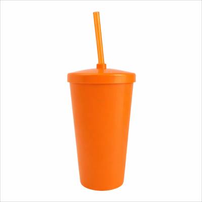 Copo Plástico com Tampa e Canudo 450ml
