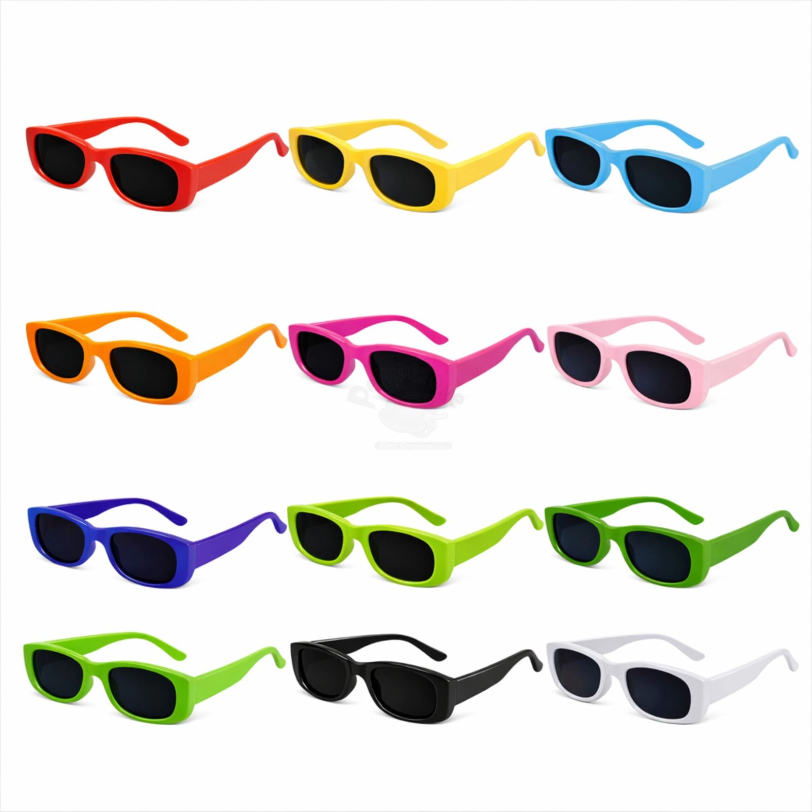 Óculos de sol personalizado com proteção UV 400, modelo retrô, ideal para brindes promocionais modernos e de alto impacto visual. Produzido em polipropileno, é leve, confortável e perfeito para eventos, ações de verão, ativações de marca e campanhas promocionais. Possui personalização em tampografia na haste ou lente, garantindo destaque para sua marca. Um brinde criativo que une estilo, utilidade e visibilidade.