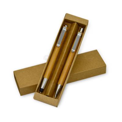 Promocional conjunto caneta e lapiseira em bambu e metal. acompanha embalagem em kraft
